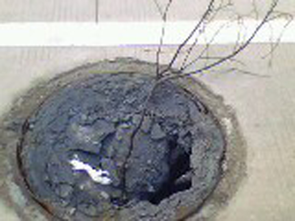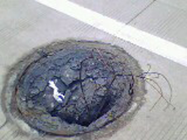 中國寧波網手機記者187****5392:昨天晚上我在匯盛路下班時不小心滑倒了,白天一看原來是個下水道…看這個窨井蓋都碎成這樣了還在使用,晚上騎車的人可要當心了…