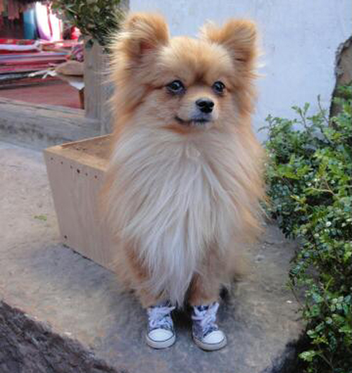 穿著球鞋的俏皮狗狗