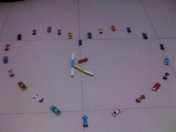 中國(guó)寧波網(wǎng)手機(jī)記者139****8094:今天中午公司的美媚們用30輛卡通小汽車在地上擺放了一顆心型圖案,中間的一個(gè)k字就是有著一顆kid孩子一樣、不想長(zhǎng)大的心的adult美媚們,哈哈!
