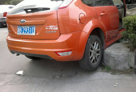 車主一急,車子沖上了花壇...