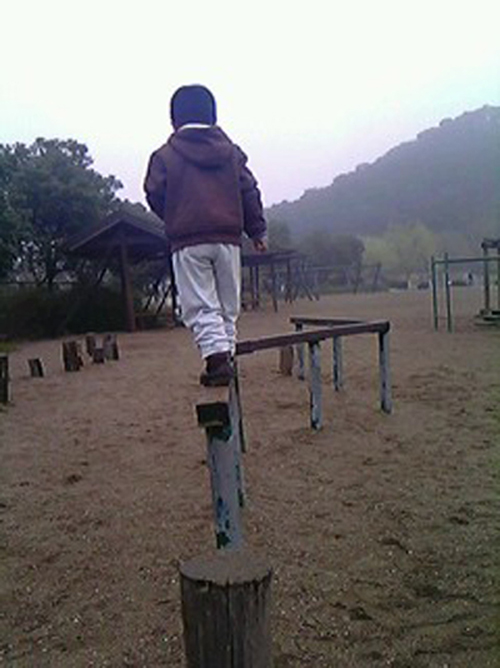 高高的獨木橋上,一個孩子走得淡定從容!孩子,你的人生希望之路才剛剛開始,祝福你!