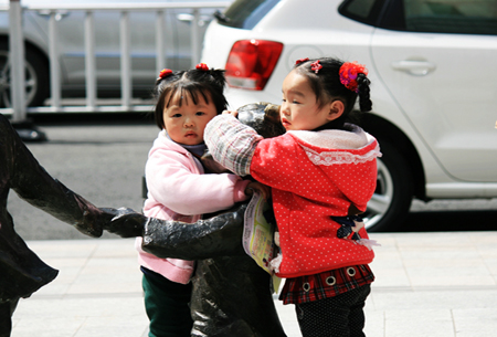 3月17日午后,在老外灘,一群男生和女生在玩花樣籃球,那些動作挺酷的。