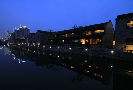中國寧波網(wǎng)手機記者高緯度:天很藍(lán),風(fēng)很輕,一輪圓月悄悄地爬上南塘老街的上空。空氣里流動著縷縷涼意,白日的炎熱慢慢的隱去,濕漉漉的水聲之中,有兩三蛙鳴點唱著夜的開始。很喜歡這里晚上的感覺。吃完飯,漫步,享受那久違的靜謐。