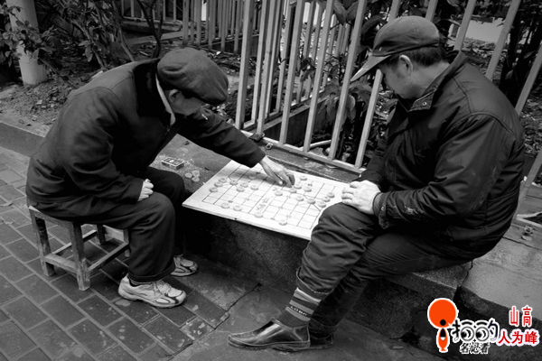 2014、2、19、陰。昨日一場(chǎng)雨雪,今天-1℃降溫,外面天氣雖寒,老哥倆,路邊棋戰(zhàn),興趣卻不冷.......