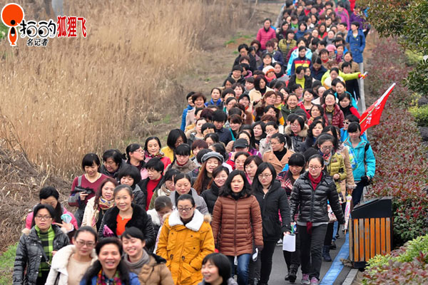 中國寧波網(wǎng)“i拍”記者狐貍飛:3月6日,寧波市1000多位女士聚集在美麗的東錢湖畔,開展由市直機關(guān)組織的“擁抱東錢湖,快樂伴我行”為主題的競走活動,以此來慶祝“三八”婦女節(jié)的到來。 胡學(xué)軍攝胡胡