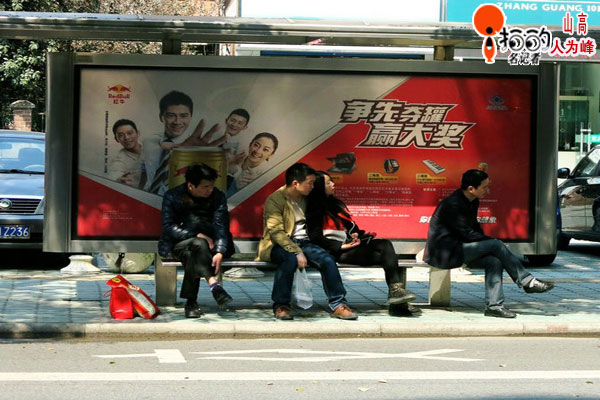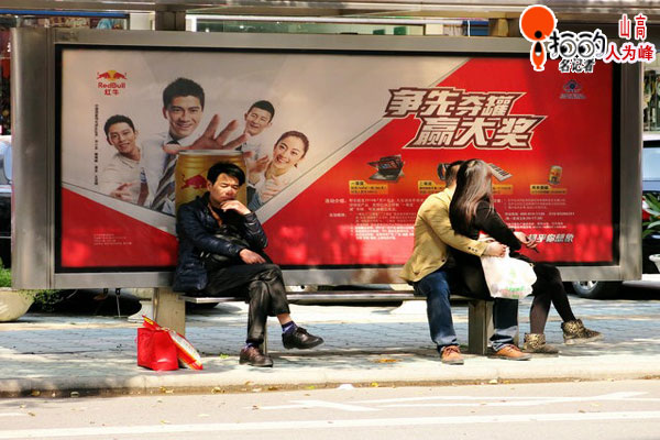 2014、3、16、晴。三月陽春,公交小站,等車寂寞,還得淡定......