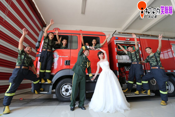 中國寧波網“i拍”記者笑瞇瞇:寧波消防高新區中隊的戰士許昊然,他曾對異地戀三年的女友陳琳承諾過一句話“等我空點兒的時候,一起拍個美美的婚紗照”,可身為軍人,這個“空點兒的時候”,一等就是一年。“八一”建軍節和傳統的“七夕”節前夕,戰友們實在看不下去了,出謀劃策把“嫂子”請進營房,拍了這一組特殊的婚紗照。