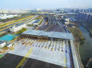 規模適度超前。17個收費道口(6進11出),比原寧波(段塘)收費站規模大(4進8出),收費廣場面積有2萬多平方米,比3個足球場面積還大,為浙江省最大的匝道收費站之一。出入口同時溝通機場快速路高架和地面道路,加強了杭甬高速與周邊區域交通的聯系,很好地解決了雙層城市快速路系統和高速公路的樞紐交通組織的問題。