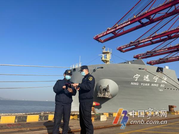 寧波海關關員在碼頭監管入境船舶。席海洋 攝