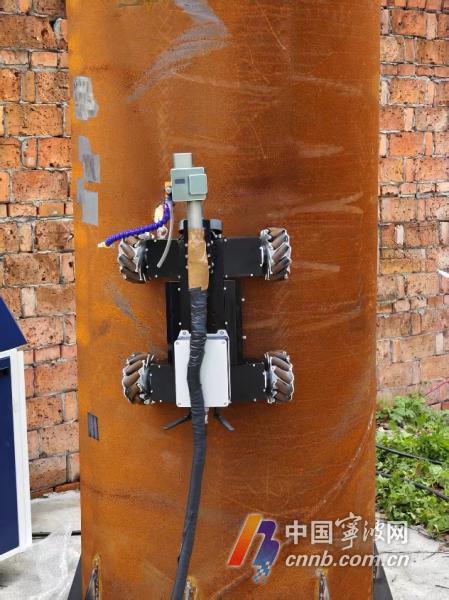 中國科學院寧波材料所聯合攻關團隊研發的這一成果,日前在象山一海島實驗基地的鋼構立柱上,出色完成高空負重攀附曲面、激光刮擦除銹作業。