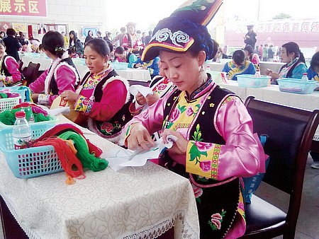 正值桃花爛漫時(shí),引得一群繡娘三五結(jié)伴來(lái)到新建村的世界桃街共繡桃花,陶醉在粉紅的花海,用絲線(xiàn)記錄別樣的春。