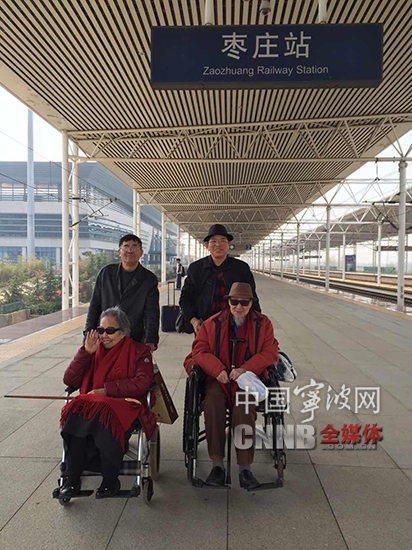 7日,蔣思豫應山東臺兒莊大戰紀念館之邀,攜老伴徐敏蕾一同從寧波前往山東臺兒莊,參加臺兒莊戰役勝利77周年和抗戰勝利70周年的紀念活動。對于一位102歲的老人來說,5個多小時的舟車勞頓是一個不小的考驗,但蔣老沒有半點猶豫,執意前行。
