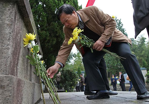 今年是中國人民抗日戰(zhàn)爭暨世界反法西斯戰(zhàn)爭勝利70周年。清明節(jié)前夕,寧波市新四軍歷史研究會(huì)組織40多人來到余姚市梁弄鎮(zhèn)獅子山落地梅花坪,向浙東抗日革命先烈敬獻(xiàn)花圈、鮮花,表達(dá)緬懷和崇敬之情。