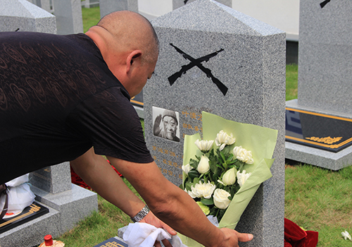 儀式進行到第二主題環節,在激昂的沖鋒號聲中,九名抗戰老兵的骨灰在專業殯葬禮儀服務團隊的護送下進入中心廣場,在致敬四百萬英烈后緩緩步入老兵墓區,揭開墓碑上圣潔的紅布、祭撒下壯烈的抗戰酒,完成了他們生命中最后的集結。在浙東抗戰老兵紀念園這一方山水之間,青山鑄塚,埋骨嘉陵,留待后人追憶與悼念。