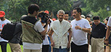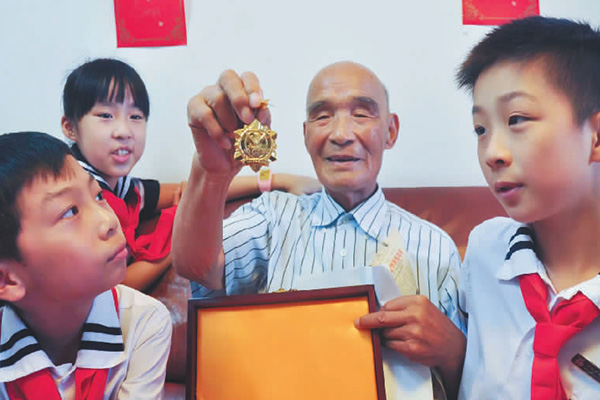 抗戰(zhàn)老兵與青少年同游象山影視城講抗戰(zhàn)故事